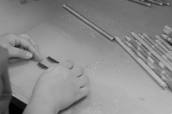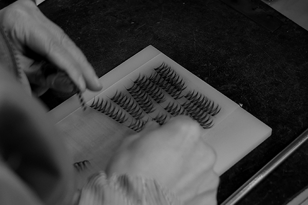 Knitting isn't just for clothing. Have you wondered how lashes are made? Each hair is meticulously placed on a band repeatedly until reaching the perfect thickness.